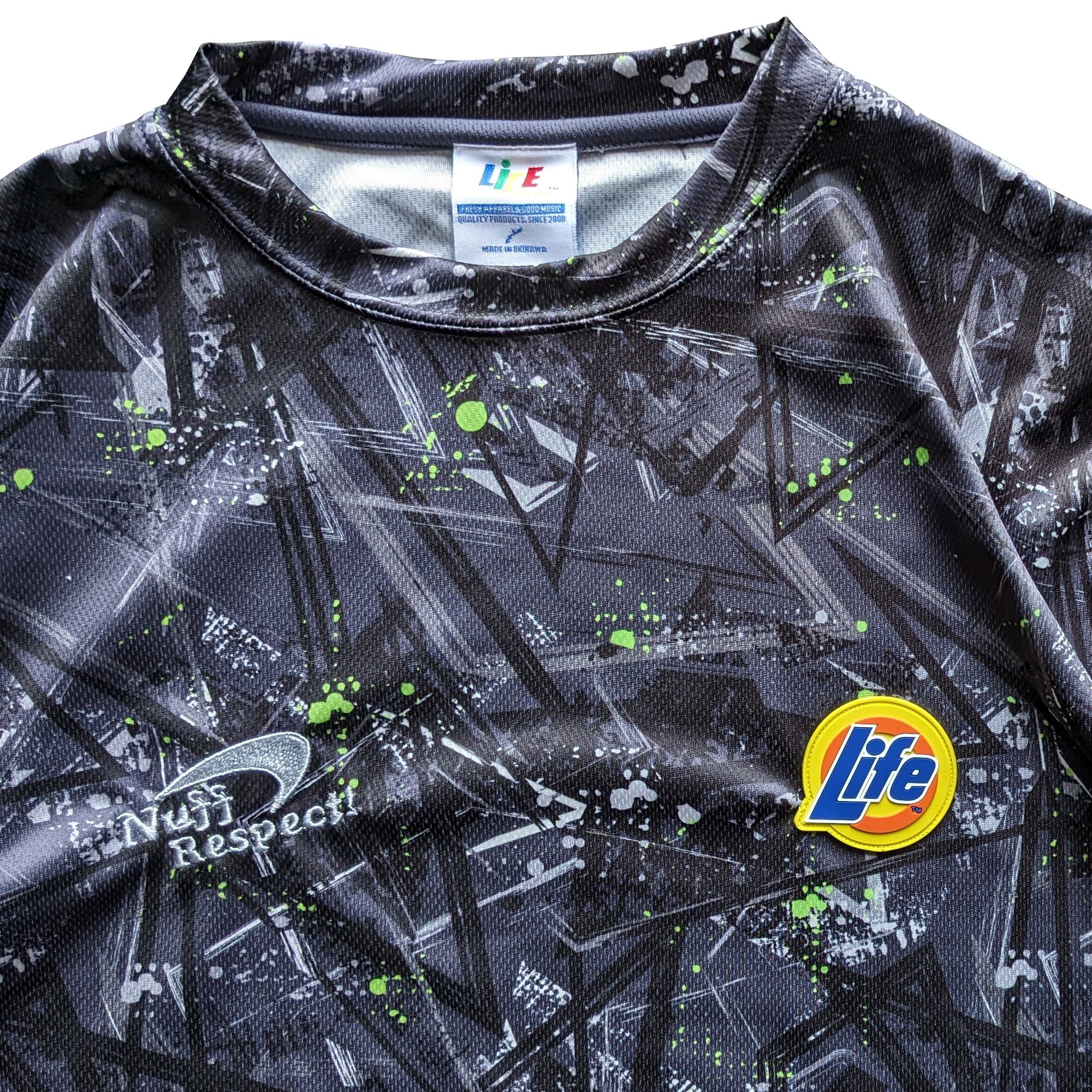 胸にラバーエンブレムと刺繍ロゴを落とし込んだゲームシャツ。
